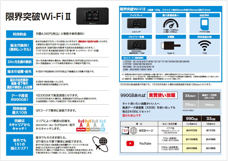 限界突破Wi-Fi Ⅱ 端末代無料!